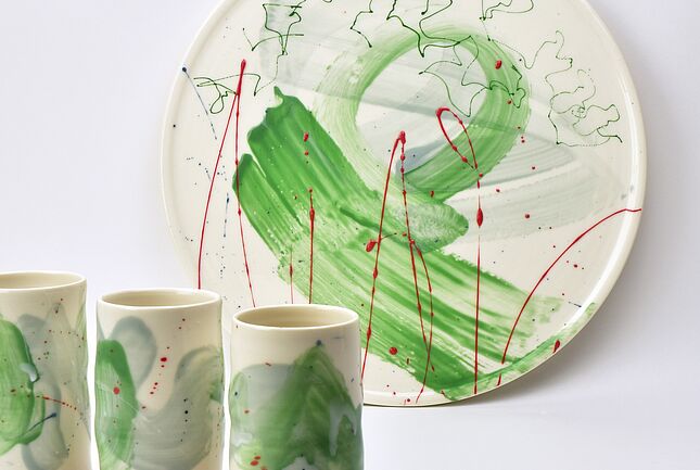 Starke Farben, ein breiter Pinselstrich, feine Linien und zarte Glasurspritzer auf weißem Porzellan sind unmittelbarer Ausdruck von Emotionen, die gegensätzlicher nicht sein könnten. Die international ausgezeichnete Keramikerin Sonja Top (*1969) aus…
